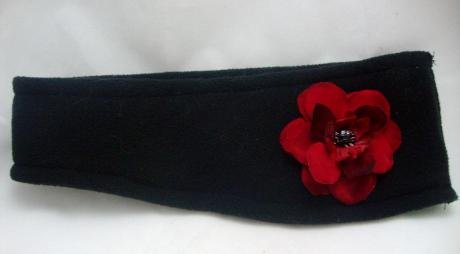NEW Black Fleece Winter Headband with Red Velvet Flower and Skull, Limited.